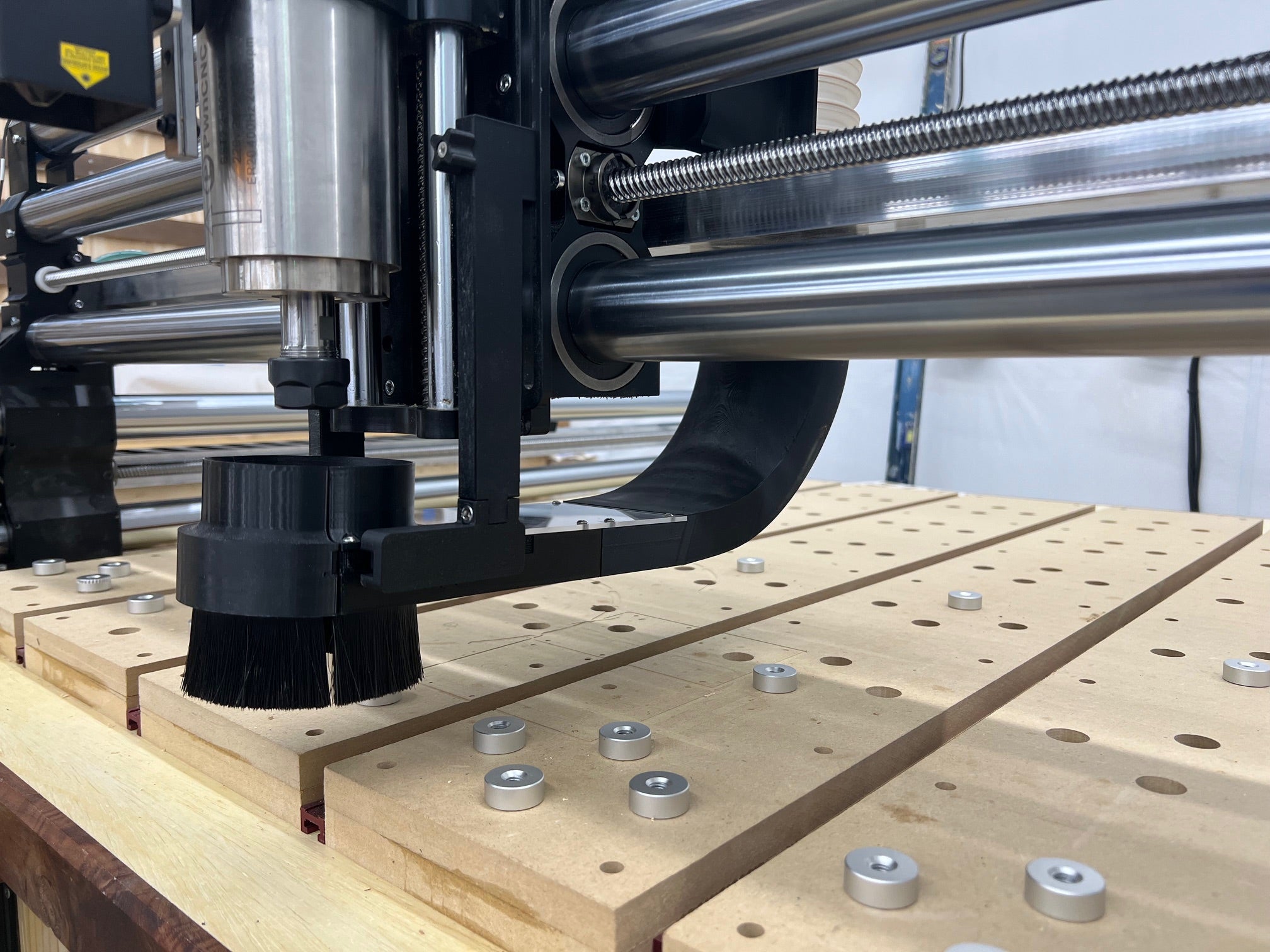 Featuring quick change brushes, support for larger drag chains, and it won't interfere with your spindle mount or crash into your G3 Touch. Oh yeah, it's also optimized for massive suction performance!